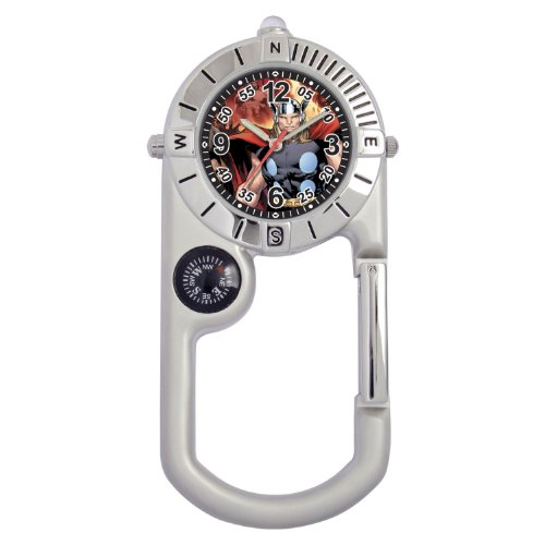 Keep time with your favorite Marvel™ character with this officially licensed kid's Marvel™ Clip Watch. The timepiece displays your favorite Marvel™ character on the face, and is designed with luminous hands for easy reading, a built-in LED light and handy decorative compass. This sporty clip watch has a polished and matte steel finish, a precision Japan movement for accurate time keeping and a 1 year manufacturer warranty..../ Marvel Comics Kid's MA0306-D327 Marvel "Thor" Explorer Clip Watch / Red Watch